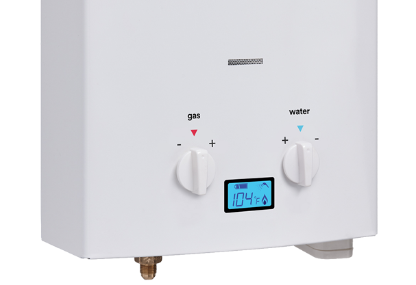 The only portable tankless water heater on the market to feature both “D” battery and 12-volt ignition.