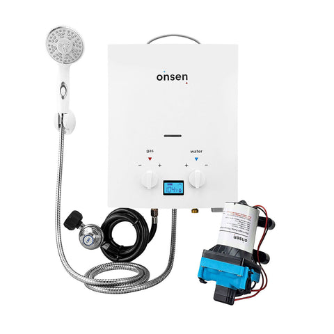 Onsen 5L Outdoor Propane Portable Tankless Water Heater 1.3 Gal/Min 32K BTU with 3.0 Pump